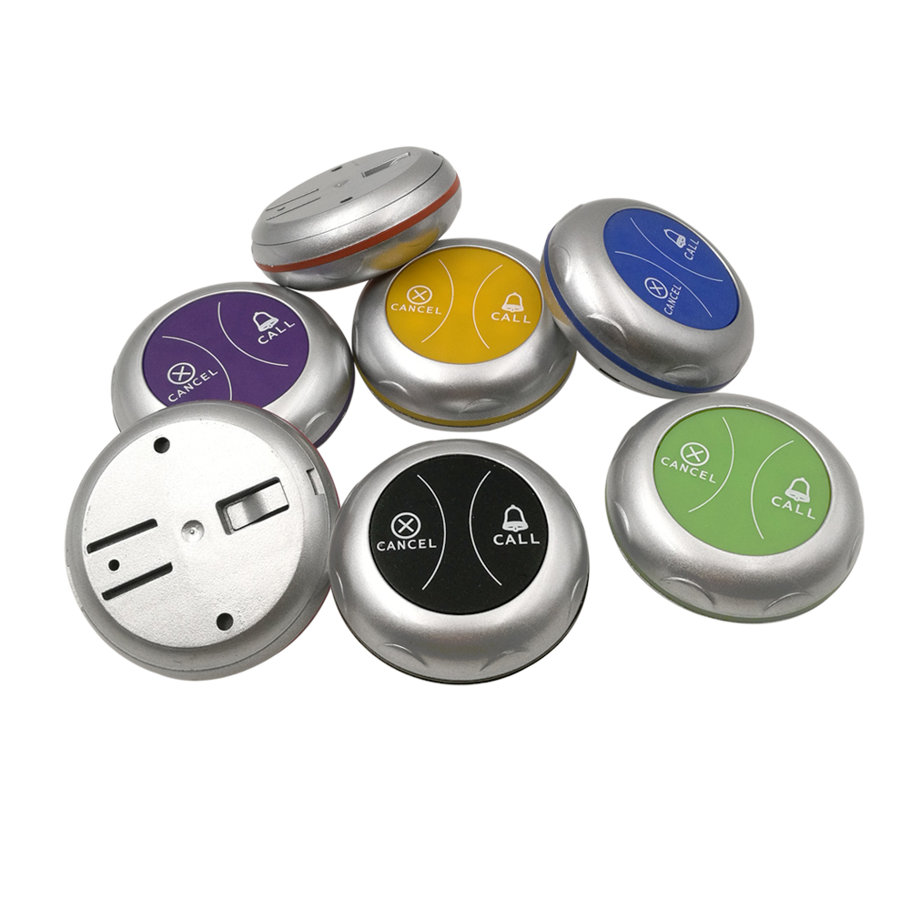 When the guest need any service, they can press the call button on the table, the table number will be showed on the RECEIVER of watch or display screen with clear “dingdong” sound or vibration, then the waiter could offer service very timely.