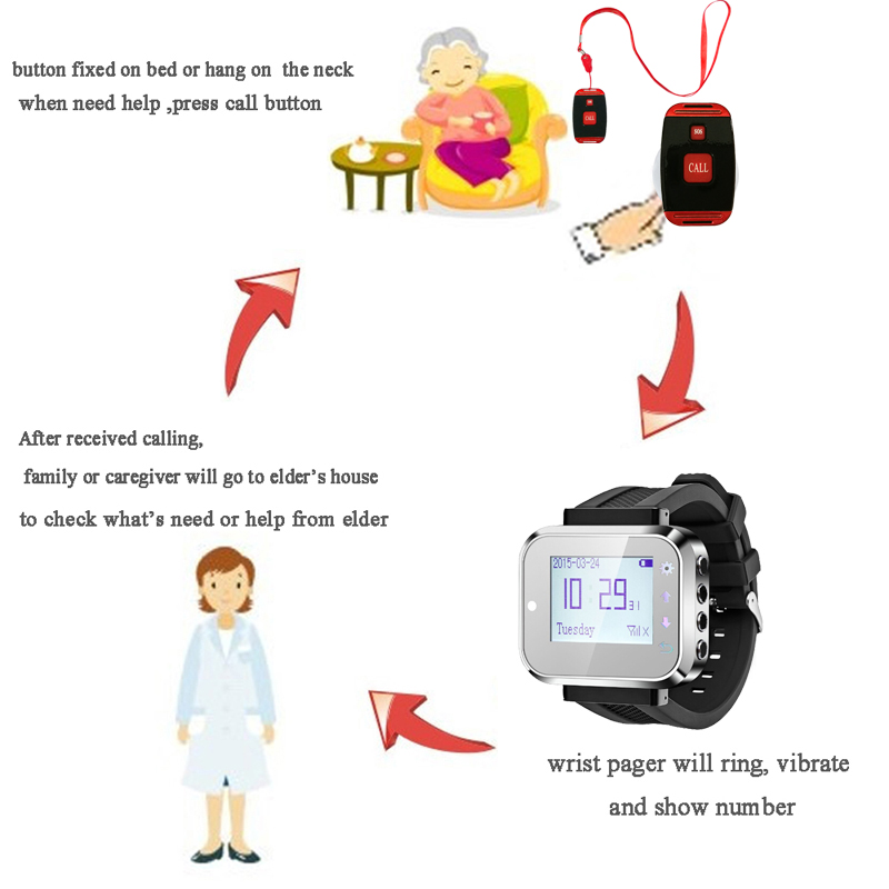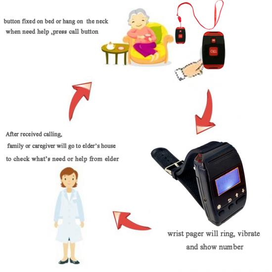 5. LONG STANDBY TIME: Wrist Pager Standby Time Up to 14 days.The Button Standby time Up to 6-12 Month.