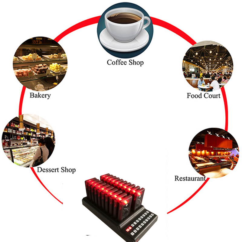 Restraunt paging system is mainly used in fast food restaurant, self-service restaurant, clinic, hospital, tea house, office and so on, where there are a lot of customers waiting for their service. The system is consist of a Keypad Transmitter for the caller and a Pager Receiver for the one who will be called. When the caller is ready to offer service, they can press the corresponding number on the keypad to send an ID to the pager. And the people holding the pager will know the information that the dishes or service are ready to be offered and take it at earlier time.