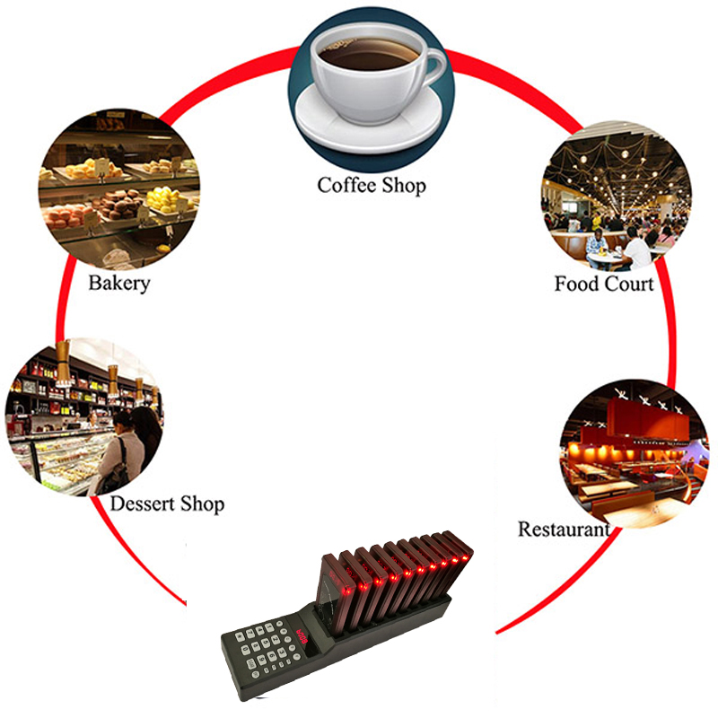 Coaster Pager System is mainly used in fast food restaurant, self-service restaurant, clinic, hospital, tea house, office and so on, where there are a lot of customers waiting for their service. The system is consist of a Keypad Transmitter for the caller and a Pager Receiver for the one who will be called. When the caller is ready to offer service, they can press the corresponding number on the keypad to send an ID to the pager. And the people holding the pager will know the information that the dishes or service are ready to be offered and take it at earlier time.