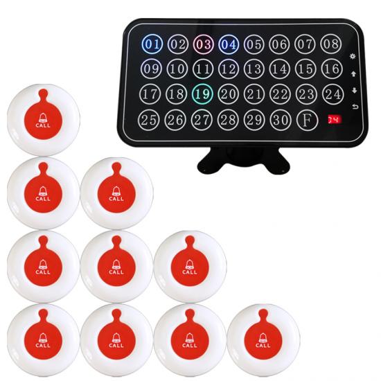 When the guest need any service, they can press the button on the table, the table number will be showed on the RECEIVER of watch or display screen with clear “dingdong” sound or vibration. So the waiter could offer service very timely.