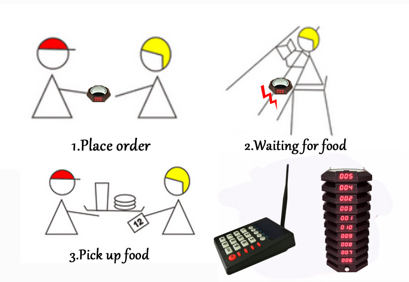 When the food is ready, the caller can press the corresponding number on the keypad to send an ID to the restaurant pager.